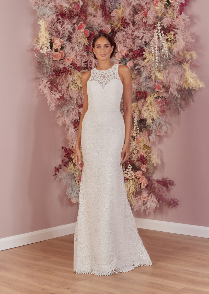 Each style can be changed to suit each bride’s requirements, these changes include, lace up to zip and buttons and vice versa. Neckline changes from straight across to sweetheart, changes of lace, beading, fabrics and colours. The sky’s the limit with this amazing bridal gown collection.